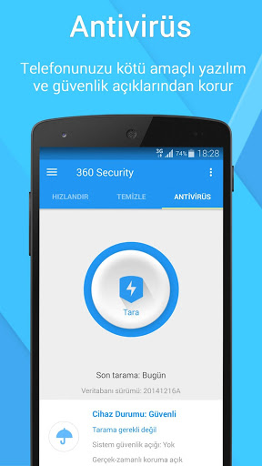 360 Security 641 milyon kullanıcısıyla adeta meydan okuyor. Mobil güvenlikte 360 marka olmuştur ve güvenle kullanabilirsiniz. kolay kullanımlı ve görsel sadelikle size nasıl kullanılması gerektiğini kendisi öğretir.