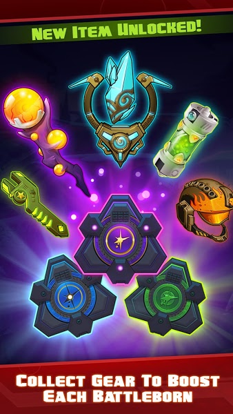 Sadece toplayın ve kötü güçlerin üzerine giderek zor bir diziye karşı en iyi mücadele şansı için Battleborn silahlarını, becerilerini ve yeteneklerini yükseltmek için altın kırıkları kullanın. Dişli bulun ve katma etkisi için istatistikleri artırmak için kullanın!