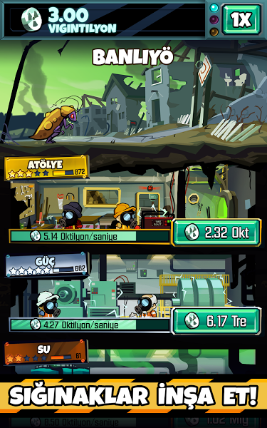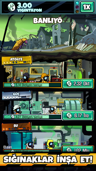 Dünyanın son durumdaki teknolojik birikimini yok etmeli ve sonradan her kesin sana mecbur kalmasını sağlamalısın. Geride kalanların kurtarıcısısın, yardımcısısın, düğmelere dokunarak yeraltı sığınaklarını yapmalı; sonrasında bu sığınaklarda odalar ve yaşam için butonlar koymalısın. Büyük sığınaklar daha çok inssan demek sende kazancını arttırmak için büyük sığınaklar senin hedefin olmalı.