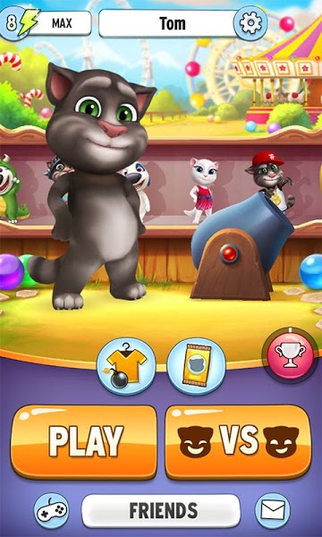 Baloncuk vurmacayı oyununu Tom ile oyna ve seviye atlayıp Tom’un arkadaÅŸlarının kilidini açarak kendi kendine oyna.