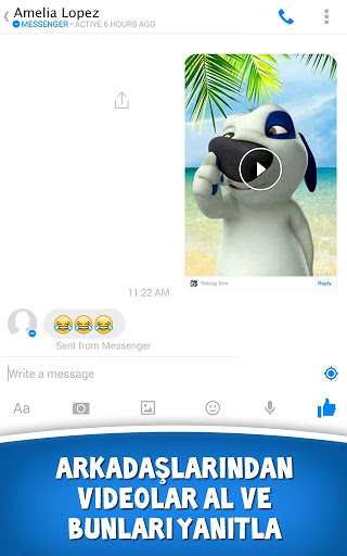 Mesenger aracılığı ile daha kolay bir tom etkileşimi üstelik yazmana bile gerek yok . Konuş yeter arkadaşların seni tom ile duysun. İstediğin tom karekterini yani Tom, Ben, Angela, Hank ya da Gingerdan birini seç ve mesajını oluştur..
