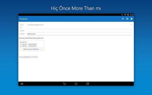 Android telefonlar ve tabletler için resmi Microsoft Outlook ile nerede olursanız olun e-postalarınızı, takvim, kişi ve eklerinizi ücretsiz olarak takip etmenizi sağlayan bir e-posta uygulamasıdır.