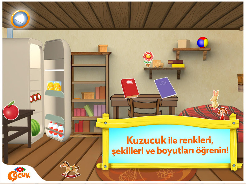 TRT Çocuktan çocuklarınızın zeka gelişimine katkı sağlayacak Kuzucuk ile çiftlik ortamında matematik ve okuma yazma ön koşulu olan renk, boyut ve şekillerikendi elleriyle oynayarak öğrenecek.Neden yabancı karekterlerle çocuk eğitim alsınki türk kareketer kuzucuğun odasına hediyeler toplama ve bu hediyeleri oda içerisinde istedikleri gibi yerleştirme yaparak oyun oynayacak.