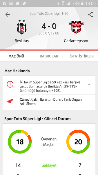 * Maçla ilgili Özel istatistikler