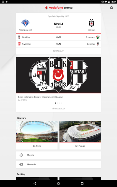 Türkiye’nin ilk akıllı stadyumu olan Vodafone Arena mobil uygulaması ile her şeyi cebinize taşıyor.