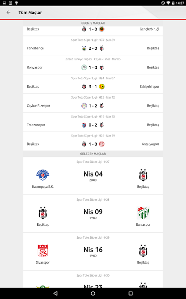 * Beşiktaş maçlarından özel anlatımlı canlı yayınlar, maç kadroları.